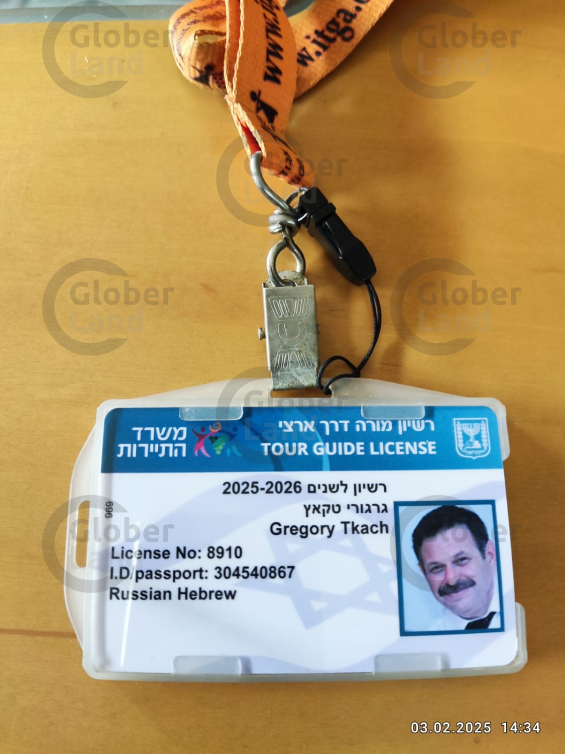 Параллельно закончил курсы экскурсоводов при Хайфском университете , лицензия за номером 8910