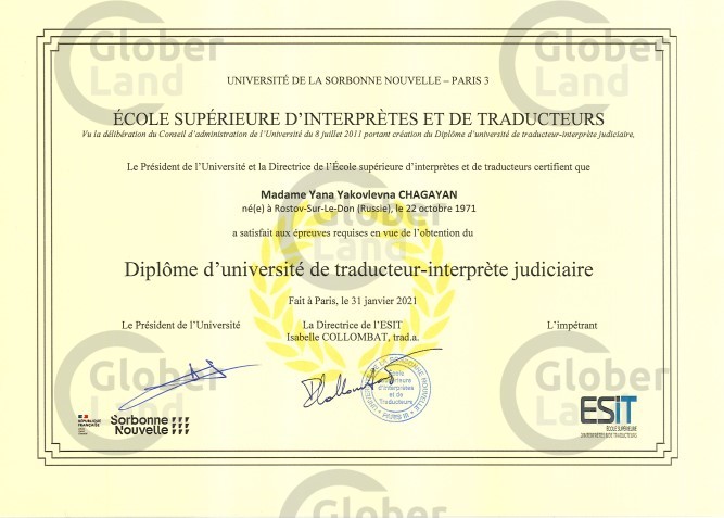 Официальный присяжный переводчик при Апелляционном суде г. Ренн
