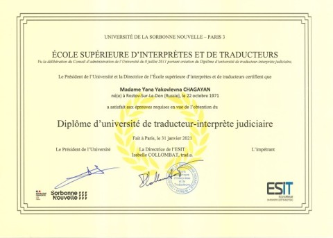 Диплом устного и письменного присяжного переводчика, 2019 - 2020