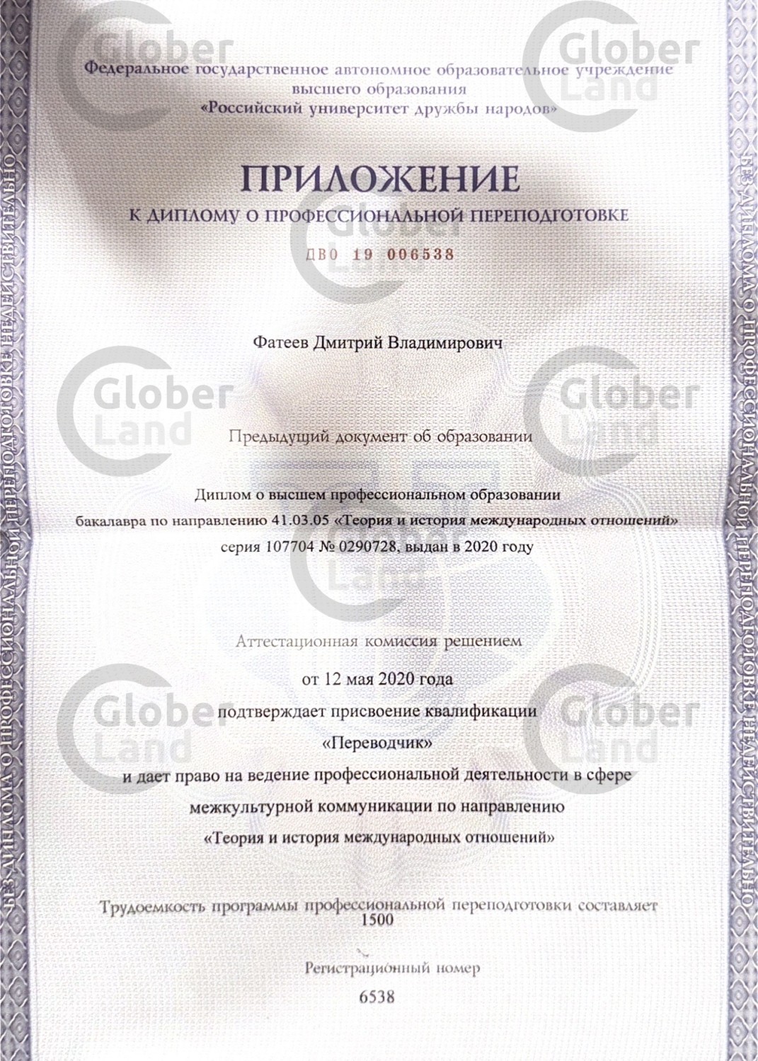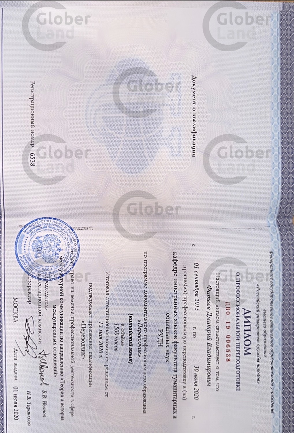 2015-2020 г. Российский университет дружбы народов (Международные отношения, переводчик Китайского, Английского)