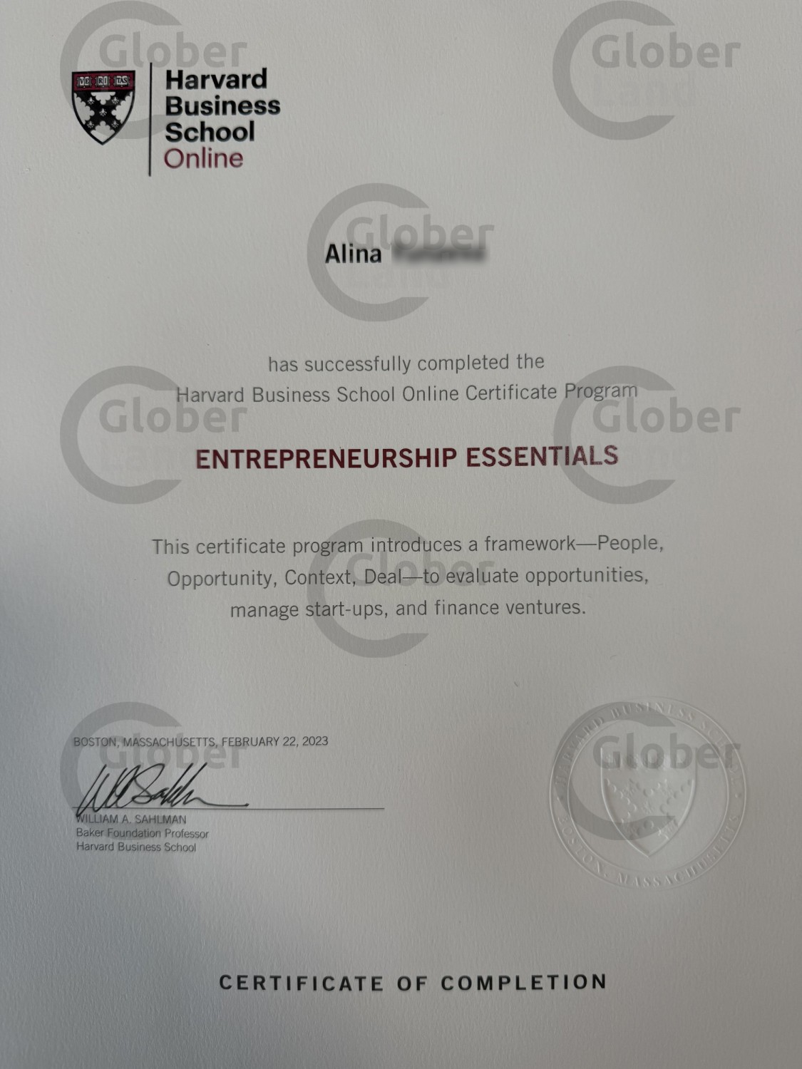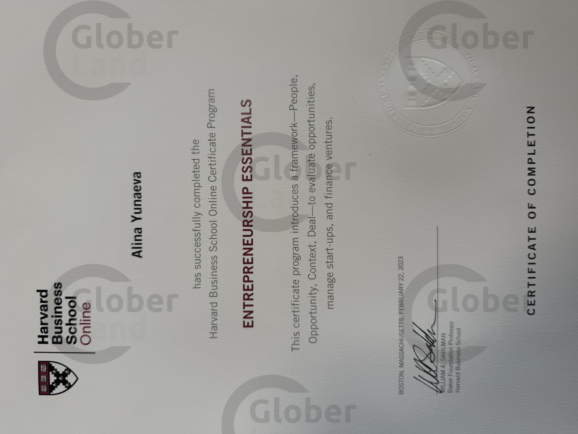 Онлайн-программа сертификации Гарвардской школы бизнеса "Основы предпртнимательства", февраль 2023 год